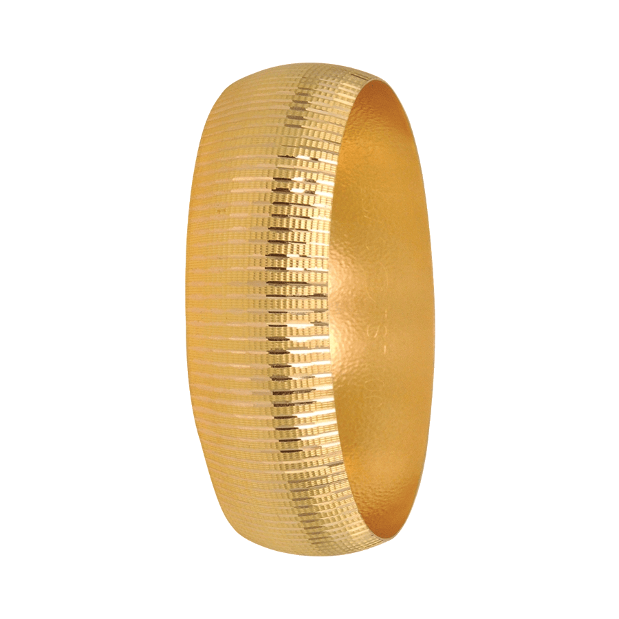 Der 22 Karat Gelbgold Bilezik MUG101 zeichnet sich durch eine breite, massiv wirkende Form mit fein gerillter, geometrischer Oberflächenstruktur aus. Die dicht angeordneten Linien reflektieren das Licht gleichmässig und erzeugen einen eleganten, ruhigen Glanz. Die Kombination aus strukturierter Aussenseite und glatter Innenseite sorgt für eine hochwertige Optik und ein angenehmes Tragegefühl. Dank seiner starken Präsenz eignet sich dieses Modell ideal für alle, die einen klassischen Goldarmreif mit klarer Linienführung und luxuriöser Ausstrahlung bevorzugen. MUG101 ist perfekt für besondere Anlässe ebenso wie für einen selbstbewussten, stilvollen Auftritt im Alltag.