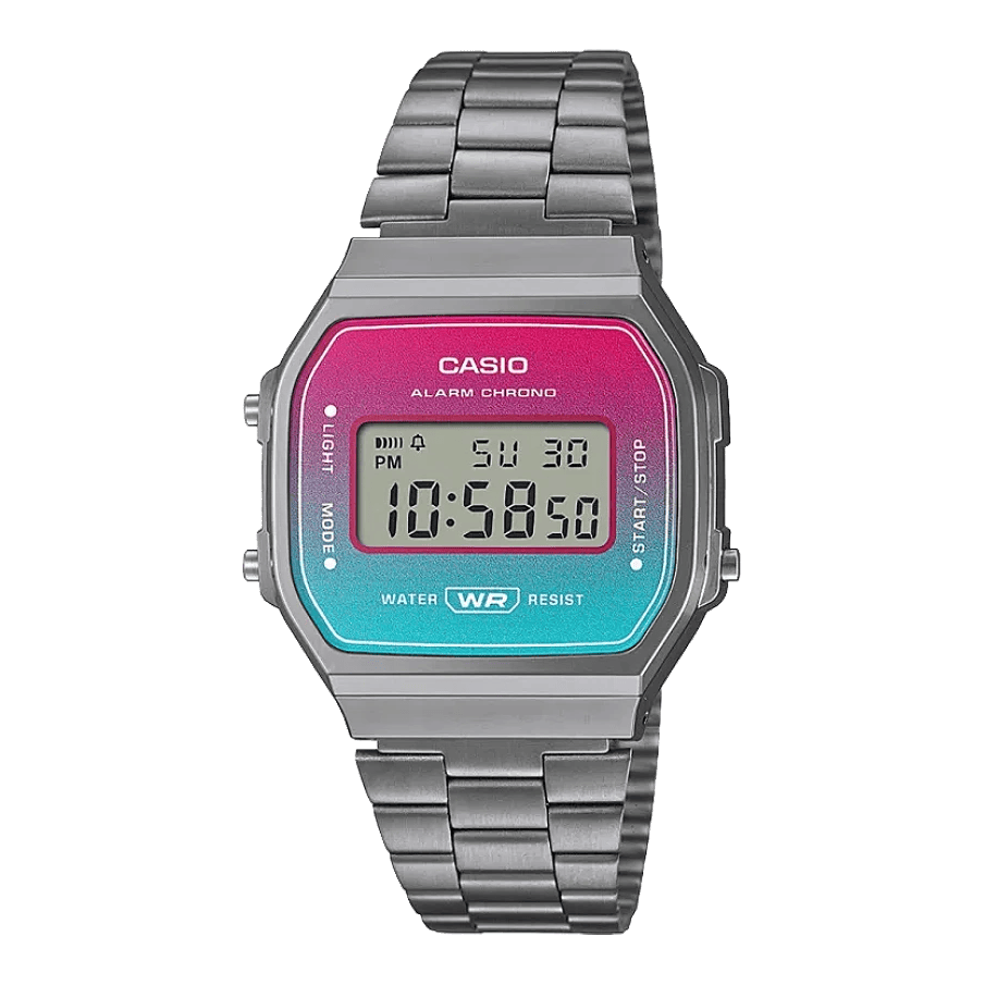 Die Casio A168WERB-2AEF kombiniert den Charme vergangener Zeiten mit modernen Features. Ihr blaues Zifferblatt und das graue Edelstahlarmband verleihen ihr einen einzigartigen Retro-Look, der sowohl im Alltag als auch zu besonderen Anlässen überzeugt.