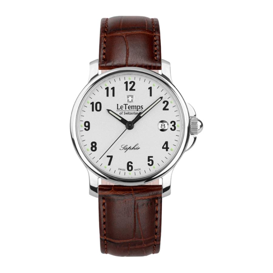 ⌚ Klassische Le Temps LT1065.01BL02 Uhr mit hellem Zifferblatt, arabischen Ziffern und Datumsanzeige.