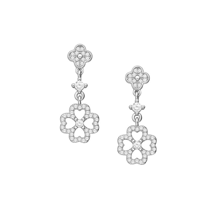 925 Silber Ohrschmuck 701-34369 mit elegantem, beweglichem Blumenmotiv und funkelndem Zirkonia-Besatz.